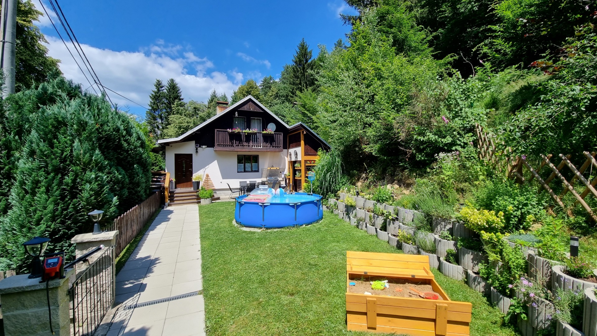 prvky jako je nová koupelna, bazén, terasa a krásné podkroví se dvěmi